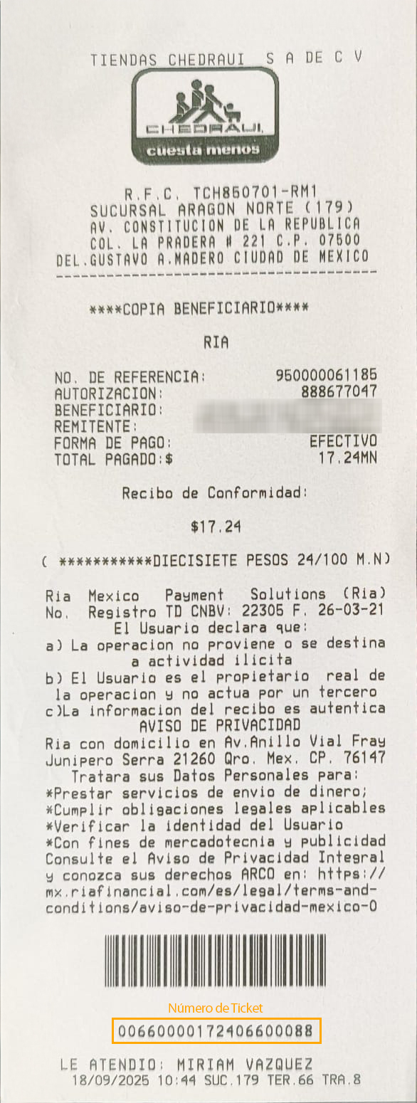 Los Tickets de Cobro de Remesas únicamente sirven como medio para comprobar la interacción solicitada, en las Tiendas Participantes, durante la vigencia de la presente Promoción, mismos que les podrán ser requeridos en caso de resultar ganadores y poder reclamar el incentivo, en caso de no ser presentado se invalidará la participación y consecuentemente, no se les podrá otorgar el incentivo.